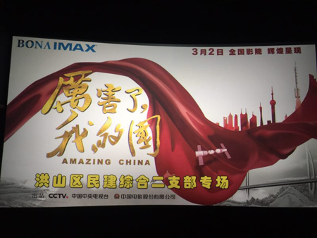 为深刻学习领悟习近平新时代中国特色社会主义思想,弘扬爱国主义精神,感受和见证祖国在新发展理念下的伟大成就,民建洪山区综合二支部于3月26日下午组织会员们观看大型纪录片《厉害了,我的国》。
