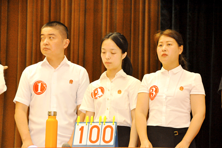 赛前,江书剑带领队员们积极下载了“党的十九大精神”知识题库,认真进行前期的紧张备赛。6月13日下午,江书剑带领队员们准时到达新洲区委党校会议室,随即参与了抽签,以此决定参赛小队的台号以及队员编号。本次知识竞赛初赛阶段分为必答题“一展风采”、抢答题“你追我赶”、风险题“扭转乾坤”、加赛题四个环节,竞赛现场气氛十分热烈,江书剑带领带领队员们积极作答,一路奋战。