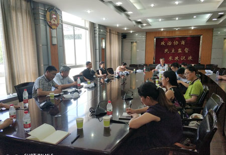 在视察了辖区青菱湖红旗渠整治、黄家湖青黄渠综合整治及南湖尾水箱涵施工进展情况,听取责任单位落实河湖长制以及汇报湖港日常维护和保洁工作等情况后,大家回到区政府进行了简短的交流座谈。姚红荣根据党派对口联系区水务局的情况,结合党派组织会内水环境治理专家前期对洪山河湖长制的专业研究,请王军振向督察调研撰写负责人提出了监督要找准角度、尺度、可操作度来建言等具体意见。与会委员积极分享参与课题督察的感受,对课题组前期严谨的工作和取得的成果表示认同。