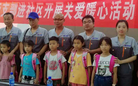 陈昌华一行人冒着大雨,在武汉开发区东荆街十八家社区党支部书记周建秋的带领下,来到社区困难家庭进行了慰问,给瘫痪在床的小朋友和其他的留守儿童送去了一批书包及文具,收到文具的东城垸中心小学三年级学生杨艺芬代表受赠者表示,爱心人士发给了我们小书包,我们很高兴,我们以后会更加努力学习,做对社会有用的人,长大以后像他们一样做好事。