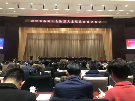 12月19日下午,武汉市新的社会阶层人士联谊会成立大会在武汉会议中心隆重举行。民建武汉市委社会与法制委员会主任李春生、副主任黄旭、童志敏、委员李丹、李伊苓、苏国森等参加了成立大会,李春生、童志敏当选为首届理事会常务理事,李丹、李伊苓当选为理事。