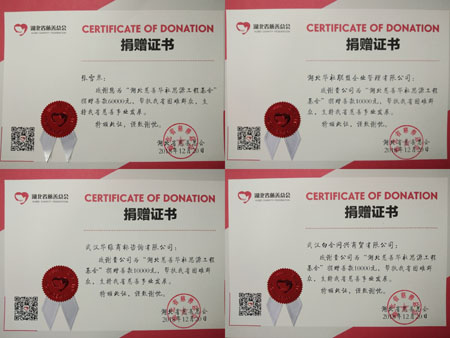 12月20日,湖北省慈善总会为民建武汉市江汉区华社支部会员张雪琴、柳雄飞、胡传文、陈明、王家辉、杨小燕、张虎、吴方国、尤锐等9名会员企业家颁发慈善捐赠证书,感谢他们为帮扶湖北困难群众,支持湖北慈善事业所作出的奉献。