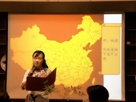 陆嵘为大家朗诵了《祖国颂》,她用慷慨激昂的语言,绘声绘色的抒发了对党和国家的真挚情感,歌颂了大家对十九大顺利召开的良好祝愿。
