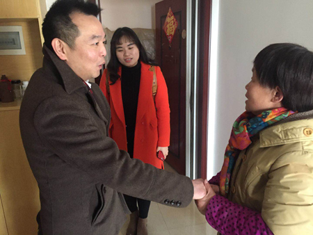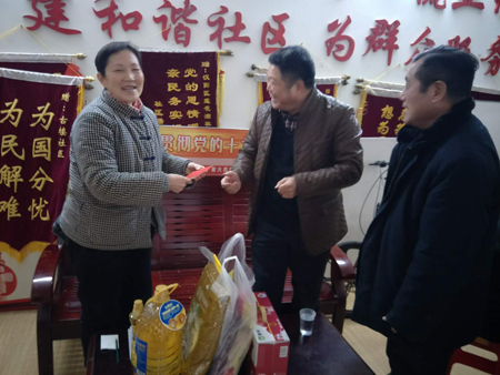在2018年狗年春节来临之际,民建武汉市汉阳工委会主委鄢军、副主委刘婧、童志敏率民建界别十三名区政协委员,积极响应汉阳区政协提倡的“235幸福工程”(235名政协委员为235名困难群众实行一对一帮扶、送温暖活动),走访各自的帮扶对象,送上油、米、现金进行慰问,聆听他们的心声,送上真切的问候。