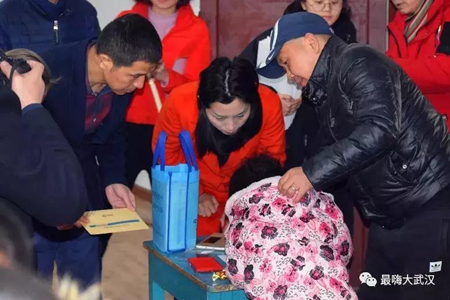 这天上午,熊善清一行还到江夏区舒安街嗣孟村走访慰问了31户特困家庭、贫困家庭,这个村也是武大总裁国粹协会秘书长张群的驻点扶贫村。据了解,湖北希望工程·博安国苗助学基金已连续三年资助该村贫困生。熊善清一行分别给这个村的贫困学生送去2018年助学金,共计30600元。