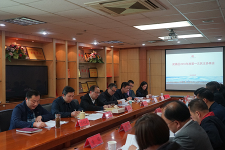 4月4日,民建武汉市武昌区委副主委喻超,会员崔一兵、谢作伟代表区民建参加了区2018年度第一次民主协商会。区委常委、区纪委书记、区监委主任汤国风,区委常委、组织部兼统战部长胡太荣出席会议。
