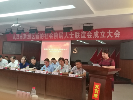 6月29日上午,民建武汉市直新洲区支部主委江书剑参加区新的社会阶层人士联谊会(简称区“新联会”)成立大会并致辞。市委统战部副部长王磊、新洲区常务副区长王振、区组织部兼统战部部长易有权等领导及区各统一战线团体组织负责人、各街镇分管统战工作的负责人以及区“新联会”全体会员90余人参加了会议。