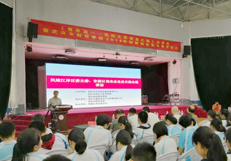 民建武汉市委发起的创业武汉·高创之星青创营的三位优秀大学生创业学员受邀作为分享嘉宾,给300余位学弟学妹做了创业和心路历程分享;民建会员、武汉市十佳创业导师郑明以及三位创业者与财贸学校学生进行了互动,得到了同学们的热烈掌声与共鸣。