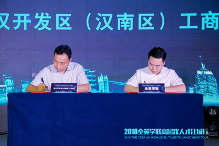 7月21日,“全英学联高层次人才江城行”活动在武汉开发区举行。武汉市委常委、统战部长胡洪春,武汉市政协副主席彭富春,武汉开发区管委会主任彭浩,武汉开发区区委常委、组织部部长、统战部部长何裕生,武汉开发区统战部常务副部长张峰林,民建汉南区支部主委黄开明及部分民建会员受邀参加活动,黄开明代表开发区企业家与全英学联主席签署战略合作协议。