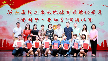 本次演讲比赛是洪山区总工会为庆祝改革开放40周年而举办的职工演讲比赛。本次演讲比赛以学习贯彻习近平新时代中国特色社会主义思想和党的十九大精神为主要内容,围绕“中国梦•劳动美”主题,结合自身实际,展示各条战线上的一线职工学习贯彻习近平新时代中国特色社会主义思想和党的十九大精神焕发出同心共筑“中国梦”的精神风貌。
