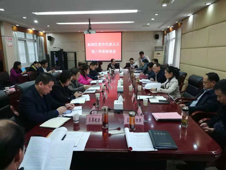 10月25日,新洲区党外代表人士第三季度座谈会在区委四楼召开。区委常委、组织部长易有权,政法委书记童赛雄,统战部长高潮,民建武汉市委常委、新洲区副区长张再强等参加了座谈会。民建武汉市直新洲区支部主委江书剑、会员吕继强参加了会议。