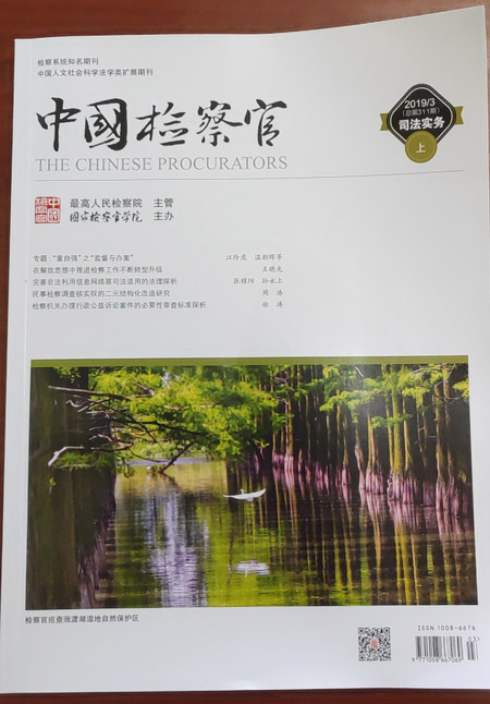 4月10日,民建武汉市直新洲区支部收到《中国检察官》编辑部邮寄来的包裹,内装两本2019年3月总第311期《中国检察官》杂志,封面采用该支部会员的摄影作品《检察官巡查涨渡湖湿地自然保护区》。《中国检察官》是最高人民检察院主管,国家检察官学院主办的全国性法学类刊物。自1999年创刊以来,得到了广大法学理论工作者、法律实践工作者,特别是检察工作者的鼎力支持和厚爱。