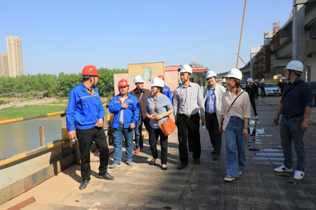 4月17日下午,民建武汉市洪山区工委主委姚红荣带领与建筑相关骨干会员一行10余人参观考察市区重大军运会交通保障项目武汉杨泗港长江大桥及青菱南路施工现场。区工委老领导文军、副主委王军振参加了考察。