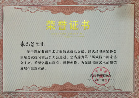 近日,武汉市武昌区文化和旅游局对区书画家协会领导机构进行人员调整,任命民建武汉市武昌区委常委秦元昌为新一届书画家协会主席。