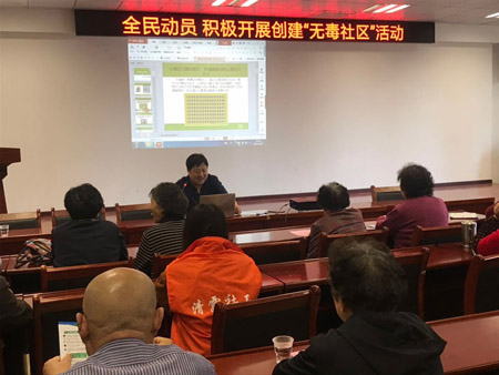 为进一步帮助广大居民了解毒品危害,树立防毒意识,提高拒毒能力,创建“无毒社区”,4月17日下午,民建武汉市汉阳区会员张晓带领区清露机构社会服务中心为鲤鱼洲社区居民开展了“全民动员,积极开展创建无毒社区”禁毒知识讲座,社区居民群众和社区志愿者、在册吸毒人员60余人参加了此次讲座。