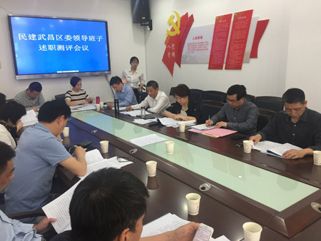 4月19日下午,民建武汉市武昌区委在区行政审批局七楼会议室召开领导班子述职测评会暨常委(扩大)会议。区民建主委徐莉,副主委方朝晖、喻超、刘成奎及常委和支部主委等参加了会议。会议特别邀请市民建副主委刘传江,副秘书长兼组织部长陈传忠参会。
