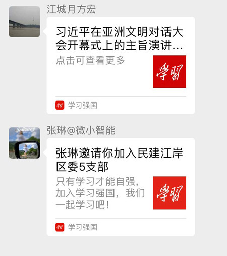 最后,支部主委张琳推荐大家下载使用“学习强国”APP,并成立了“民建江岸区五支部”学习小组。现场学习了“习近平在亚洲文明对话大会开幕式上的主旨演讲”精神后,会员们都深受鼓舞,感受到了强烈的“文化自信”,纷纷表示今后会利用“学习强国”这个工具加强对国家政策的学习和理解,力争双岗建功。