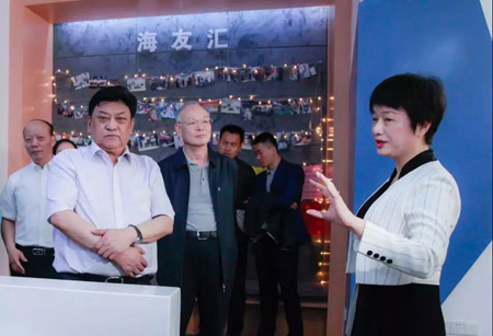 在“海友汇”专区,何翠文向领导汇报,这里展示了海归创业者找资金、找团队、找项目、找合伙人的信息,形成了资源共享、信息互通、业务互动。海创云是市侨联授予的“新侨驿站”,主要为新侨人士构建了共享服务平台,成为新侨人士学习、活动、联谊、沟通的基地,侨胞温暖之家。