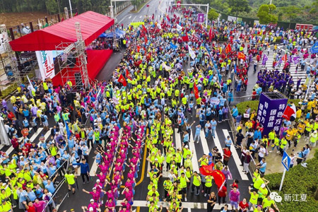 江夏区委统战部组织了区各民主党派、工商联、知联会和湖北经济学院的大学生们组成了“同心方阵”,民建江夏区会员丁玲、林丽、程科、曾永智等参加徒步。大家齐心协力,相互鼓励,顺利完成了12公里徒步路程。