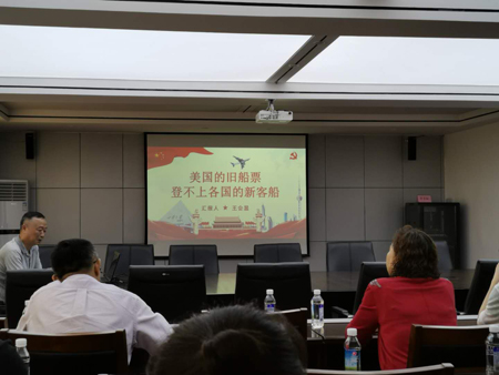 国际问题专家王会显作为主讲嘉宾,以犀利、丰富、活泼的演讲风格,对当前中美贸易和国际形势进行深入的分析,提出相应的应对方案和策略。面对美国的经济霸权和野蛮行经,作为民主党派成员应紧密团结在以习总书记为核心的党中央周围,做好本职工作,用实际行动应对困难。
