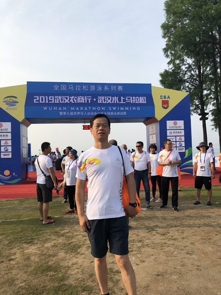 6月2日,“与军运同行”2019全国马拉松游泳系列赛武汉水上马拉松、第七届世界军人运动会公开水域游泳测试赛在东湖风景区长天楼鸣枪开游。来自全国24个省、直辖市、自治区的32支方队,多名境内外高水平运动员参加。民建武汉市洪山区会员刘利武参加了赛事,以实际行动为祖国七十周年华诞献礼,同时以即将到来的第七届世界军人运动会为契机,向世界诠释:来美丽江城,游荆楚东湖,创军人荣耀,筑世界和平!