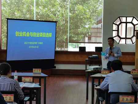6月1号上午,民建武汉市江岸区五支部会员、武汉开富经济研究中心主任张福宏为湖北省中华职业教育社主办的“湖北省高校创业指导教师研修班”做主题授课。