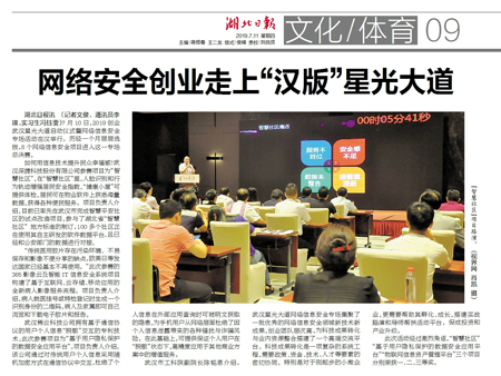 7月10日上午,由武汉市经济和信息化局、市突破性发展民营经济工作领导小组办公室指导,市创业天使导师团、市中小企业发展促进中心主办,市工科院孵化器、融智众创空间承办的“2019创业武汉星光大道”的首个专场活动在汉举行。由民建武汉市武昌区会员汪洋担任执行总裁的企业——武汉深捷科技股份有限公司孵化的智慧云社区项目夺得专场大赛冠军。