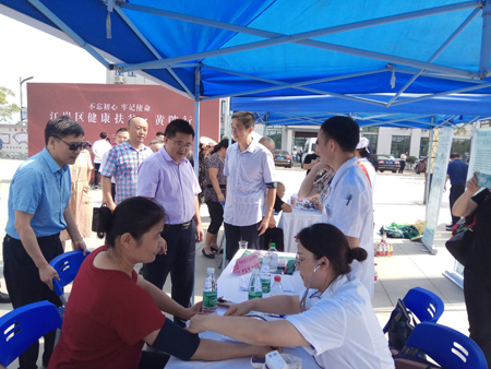 为推进扶贫攻坚工作深入开展,7月17日,由武汉市江岸区人民政府牵头,江岸区卫健局组织本区内医疗机构到黄陂区对口帮扶地区开展大型义诊活动。本次活动涉及黄陂区的帮扶单位包括木兰乡12个贫困村、王家河街卫生院。
