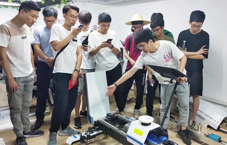 武汉工程大学作为湖北省重点建设高校,在土木工程及建筑领域历经30年的建设与发展,拥有雄厚的师资力量和科学研究基础,此次选择民建会员企业作为实习基地,充分肯定了民建企业在测量领域内的科技领先水平。公司派专家向参观大学生介绍了当代航测项目中使用的测绘仪器设备,包括传统GPS、RTK、高精度自动测量机器人、大疆无人机等,并重点介绍了公司自主研发的“铁路快速复测车”。此车已经投放到铁路建设维护中,经过大量项目测试,各项指标已追赶国际领先水平。