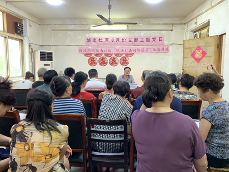 为了促进老年人身心健康,提高老年人生活质量,打击网络谣言,8月12日上午,民建武汉市武昌区会员柯嵩华律师义务为白沙洲城南社区居民开展“依法打击网络谣言”主题法制讲座,40多位居民参加了此次活动。