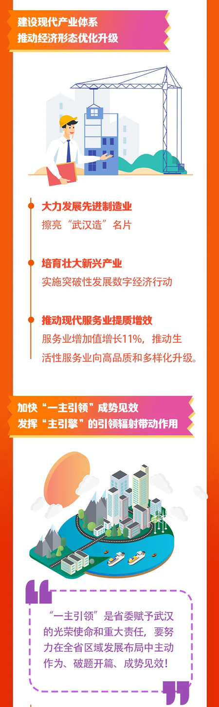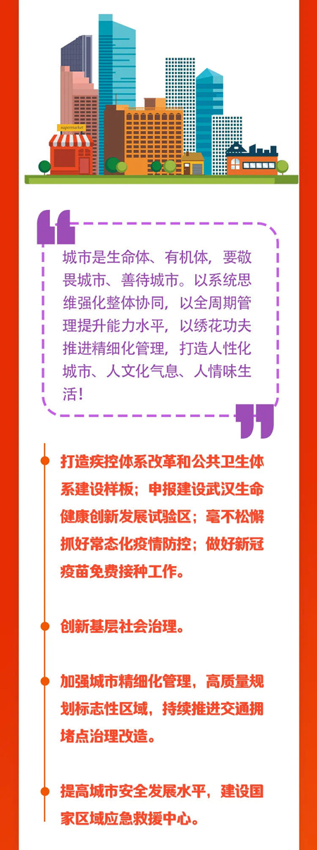程用文表示,今年是“十四五”开局、新征程开启之年,是中国共产党成立100周年,也是武汉疫后重振和高质量发展的关键之年。要持续鼓足“主战场”的豪情和拼劲,努力跑出最快速度、争取最好结果,全力以赴迈好第一步、见到新气象,重点做好十个方面的工作:
