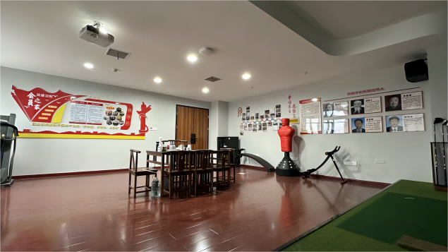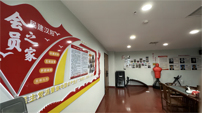 会员之家70平米场地宽畅明亮,简约大气。文化墙宣传内容丰富凝练,有民建发展沿革,历任领导人光辉事业介绍;民建重大事件节点历程展示。硬件配置齐备,有学习书架、模拟高尔夫场景的运动装置,会议桌椅、沙发若干。