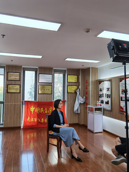 为弘扬伟大的抗疫精神,讲好民建全国抗疫先进集体和先进个人事迹,民建中央办公厅信息中心陈鹏主任带队的采访组一行于9月27日—29日来汉采访荣获民建全国抗疫先进集体的民建武汉市委员会,这是采访现场之一。